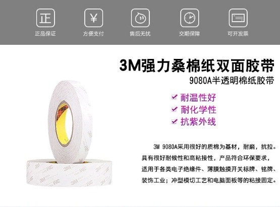 內容描述:3M 9080A屬于無紡布基材雙面膠,由無紡布雙面涂布丙希酸膠制成,顏色為白色半透明;是一款易于操作,通用的型的雙面膠,具有耐久性,耐溫性好,短期耐溫性120℃,長期耐溫性90℃;防水性,回彈性好,粘力強。 優質服務:如果您對我公司及我們的產品感興趣,歡迎到我公司來拜訪,您也可以以來電咨詢,我們的員工將竭誠為您提供產品信息和應用知識,使您不僅得到物超所值的新產品而且得到我們貼心的服務。