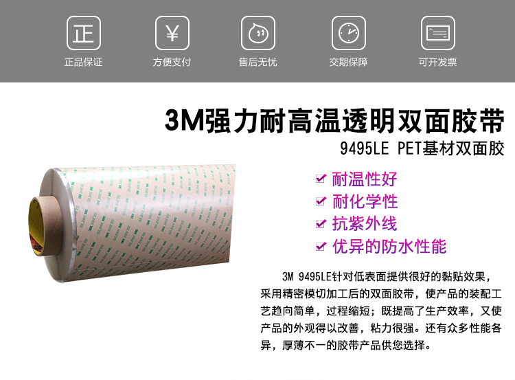 內容描述:3M? 945LE PET基材透明雙面膠帶為大多數表面提供高粘接強度,包括聚丙烯和粉末涂層等多種低表面能塑料。對于受到機械部件常用油輕微污染的表面,丙烯酸膠粘劑也可提供優異的粘附性。 優質服務:如果您對我公司及我們的產品感興趣,歡迎到我公司來拜訪,您也可以以來電咨詢,我們的員工將竭誠為您提供產品信息和應用知識,使您不僅得到物超所值的新產品而且得到我們貼心的服務。