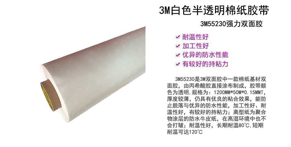 內(nèi)容描述:3M?雙面棉紙膠帶使用棉紙基材,改善復(fù)合和模切性能。高剝離力可應(yīng)用在多種表面。