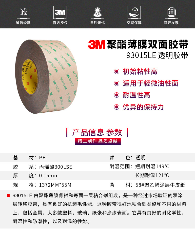 內(nèi)容描述:3M93015LE,0.15mm厚,PET基材雙面膠帶 300LSE系列, 透明超薄,這種膠帶很好的粘合類似和不同材料表面,包括金屬,大多數(shù)塑料,玻璃,紙張和涂漆表面。它具有良好的耐化學(xué)性,耐濕,耐溫,耐候性和防潮性。